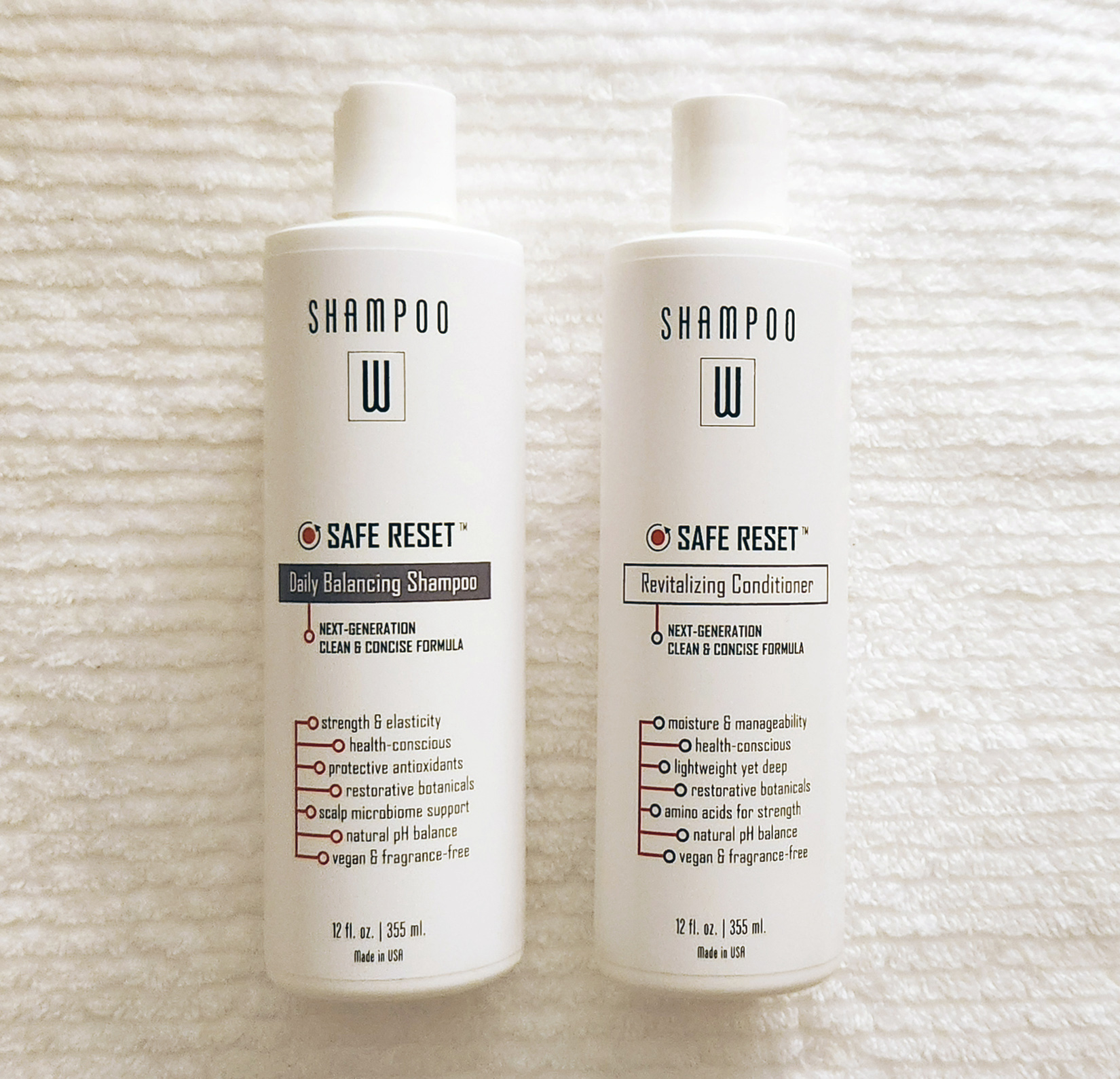 Safe Reset™ Duo – Enjoy the benefits of our novel plant-based, health-conscious, and fragrance-free Shampoo and Conditioner and save 10%. Use Safe Reset™ Daily Balancing Shampoo in tandem with Safe Reset™ Revitalizing Conditioner for shine, strength, and manageability. Both are safe for color-treated hair. Reset your hair care routine for a healthier you.